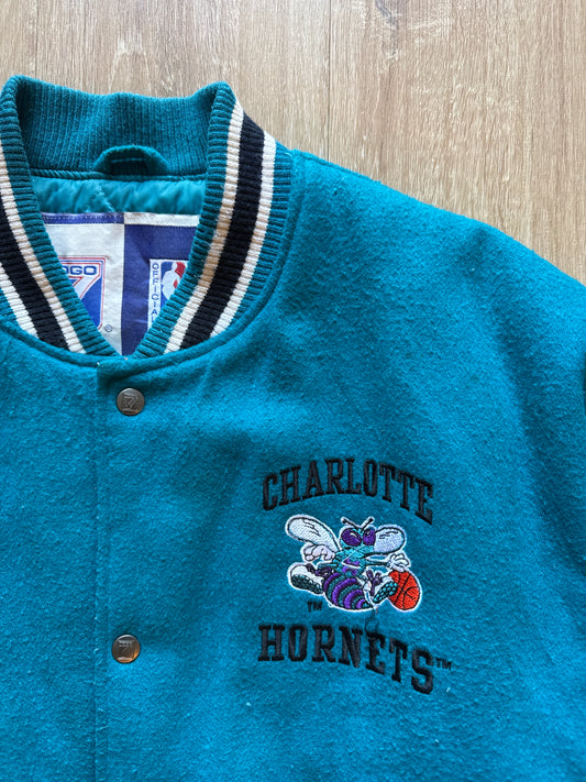 Vintage Logo 7 Charlotte Hornets Fleece Puffer Varisty Jacket