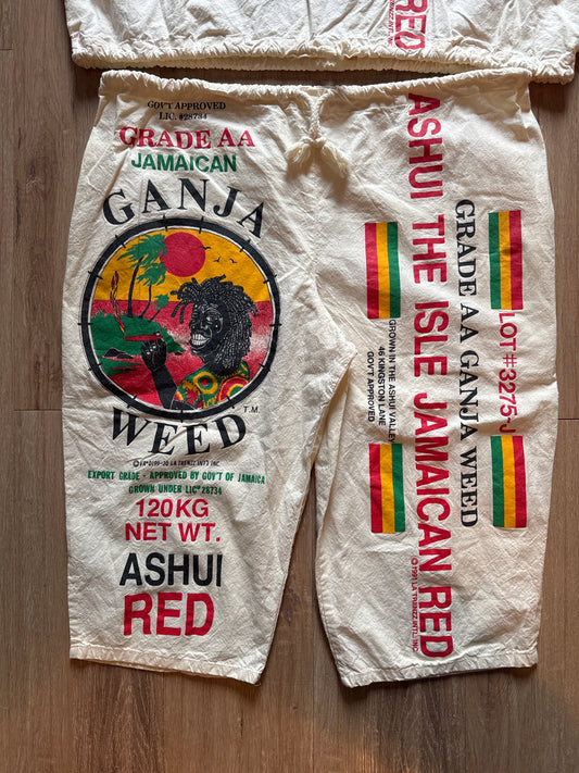 Vintage 1991 La Trenzz Jamaican Ganja Weed Ashui Red Rasta Reggie Hooded Shirt & Shorts Set