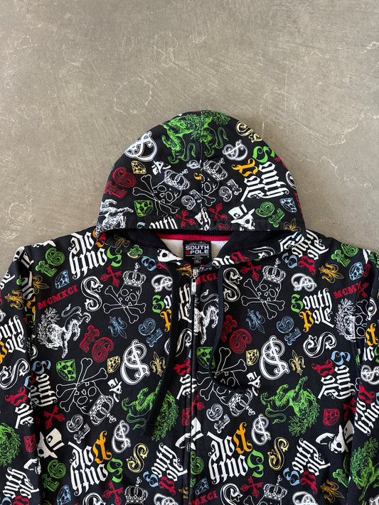Y2K South Pole Skull Crossbone All Over Print Zip Up Hoodie
