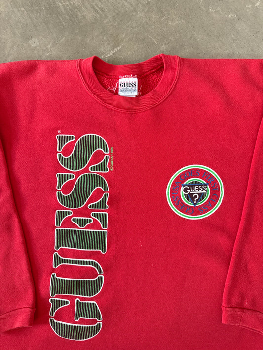 Vintage 1989 Guess USA Goes First Class Cropped Sweatshirt