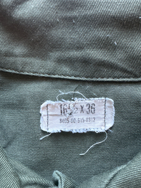 Vintage 60s 70s Vietnam War Era US Army OG-507 Utility Olive Green Button Up Shirt