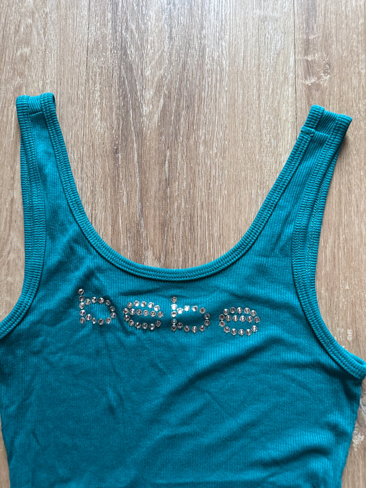 Y2K Women’s Bebe Bedazzled Teal Tank Top Logo Tee