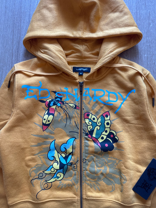 Ed Hardy Women’s Marigold Butterflies Cropped Full Zip Hoodie
