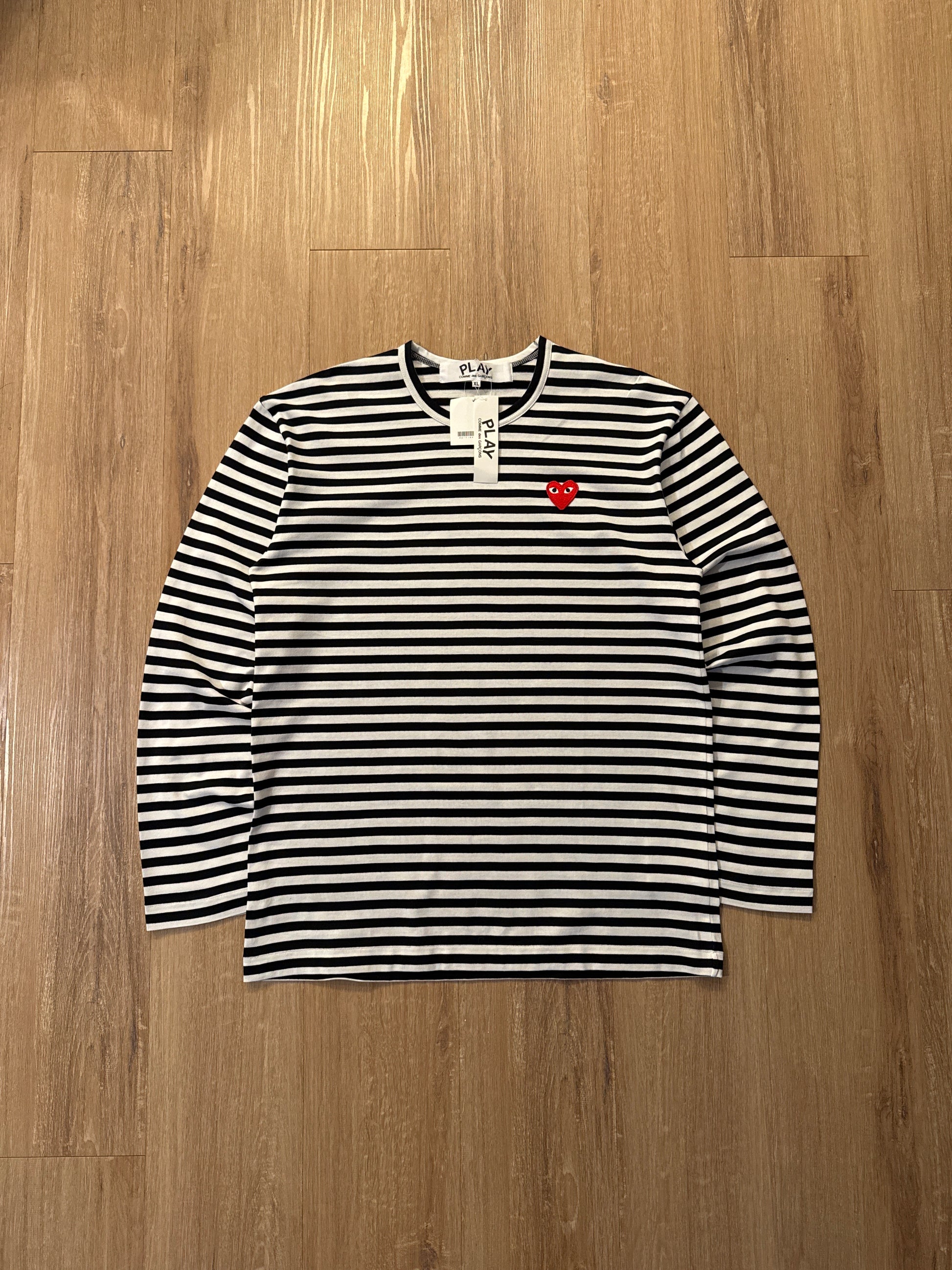 Comme Des Garçon Play Black Strip Long Sleeve Tee
