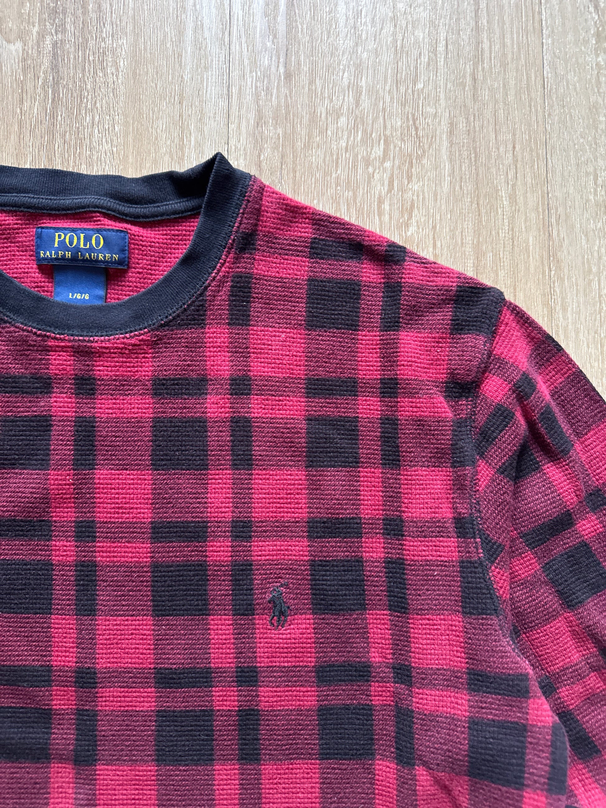 Polo Ralph Lauren Youth Plaid Red Black Thermal Long Sleeve