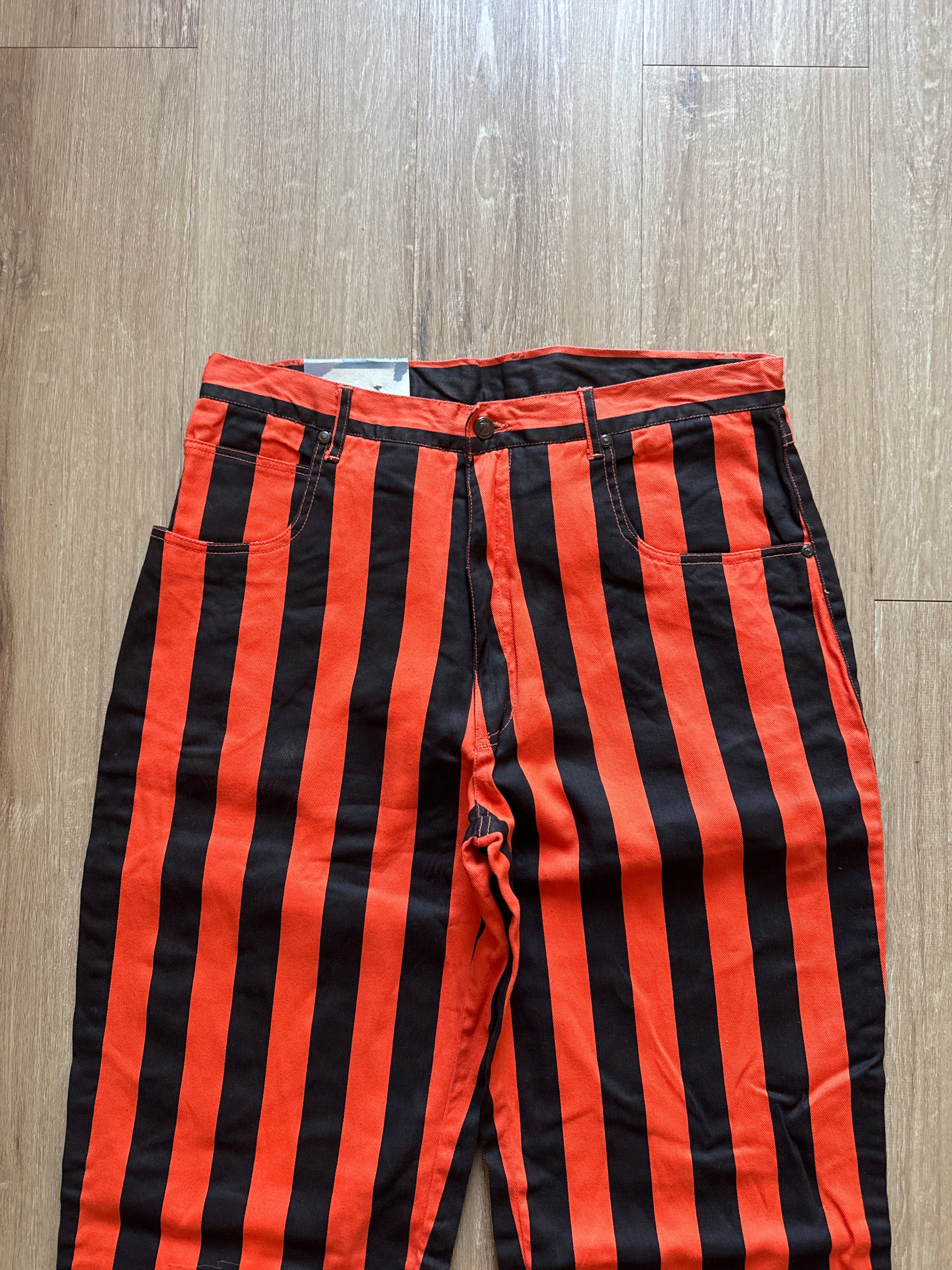Vintage 90s Zip Code Jeanswear Funky Will Smith Fresh Prince Of Bel-Air Stripe Orange Black Pants