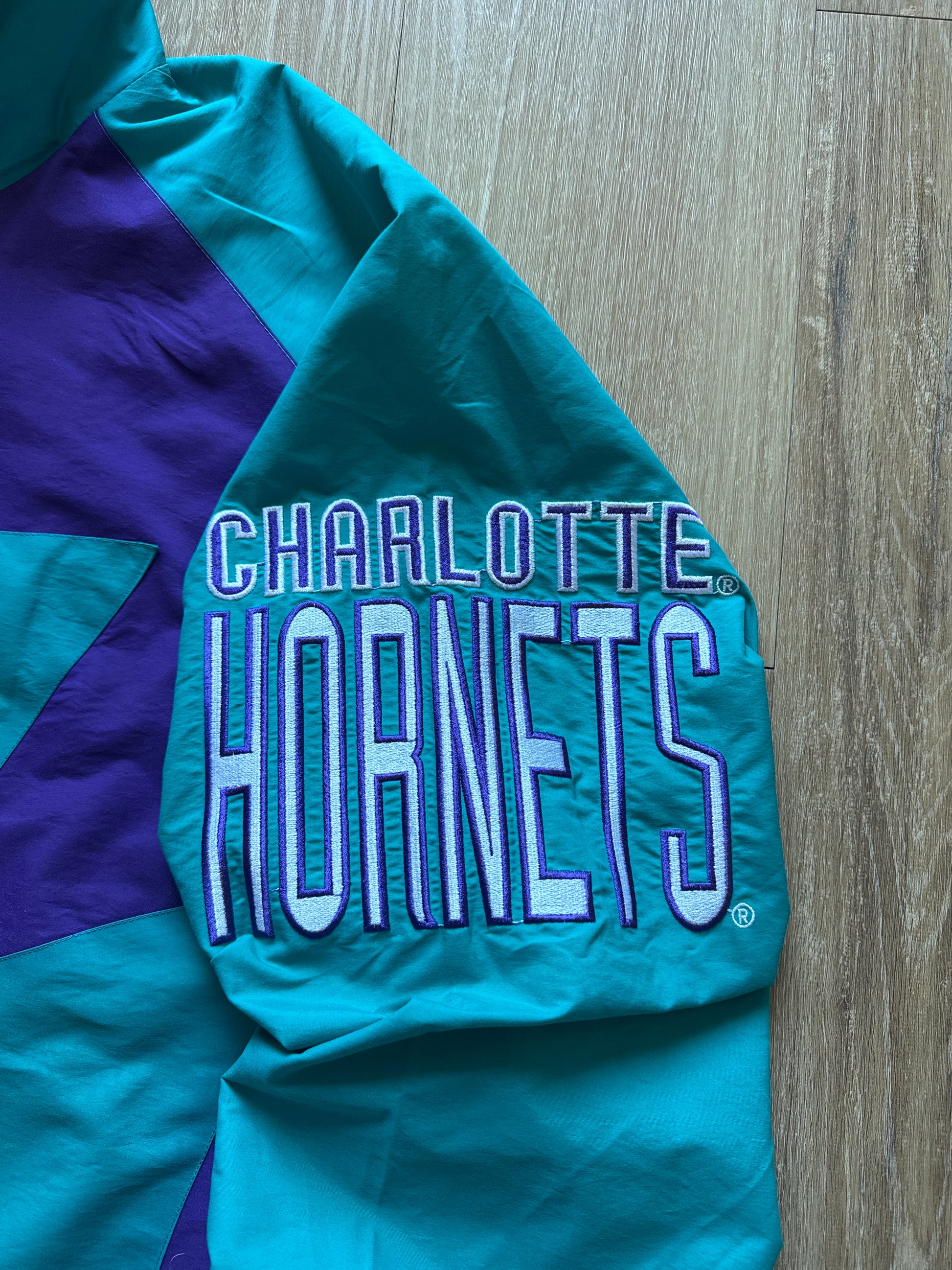 Vintage 90s Logo Athletic Charlotte Hornets Sharktooth Windbreaker Jacket