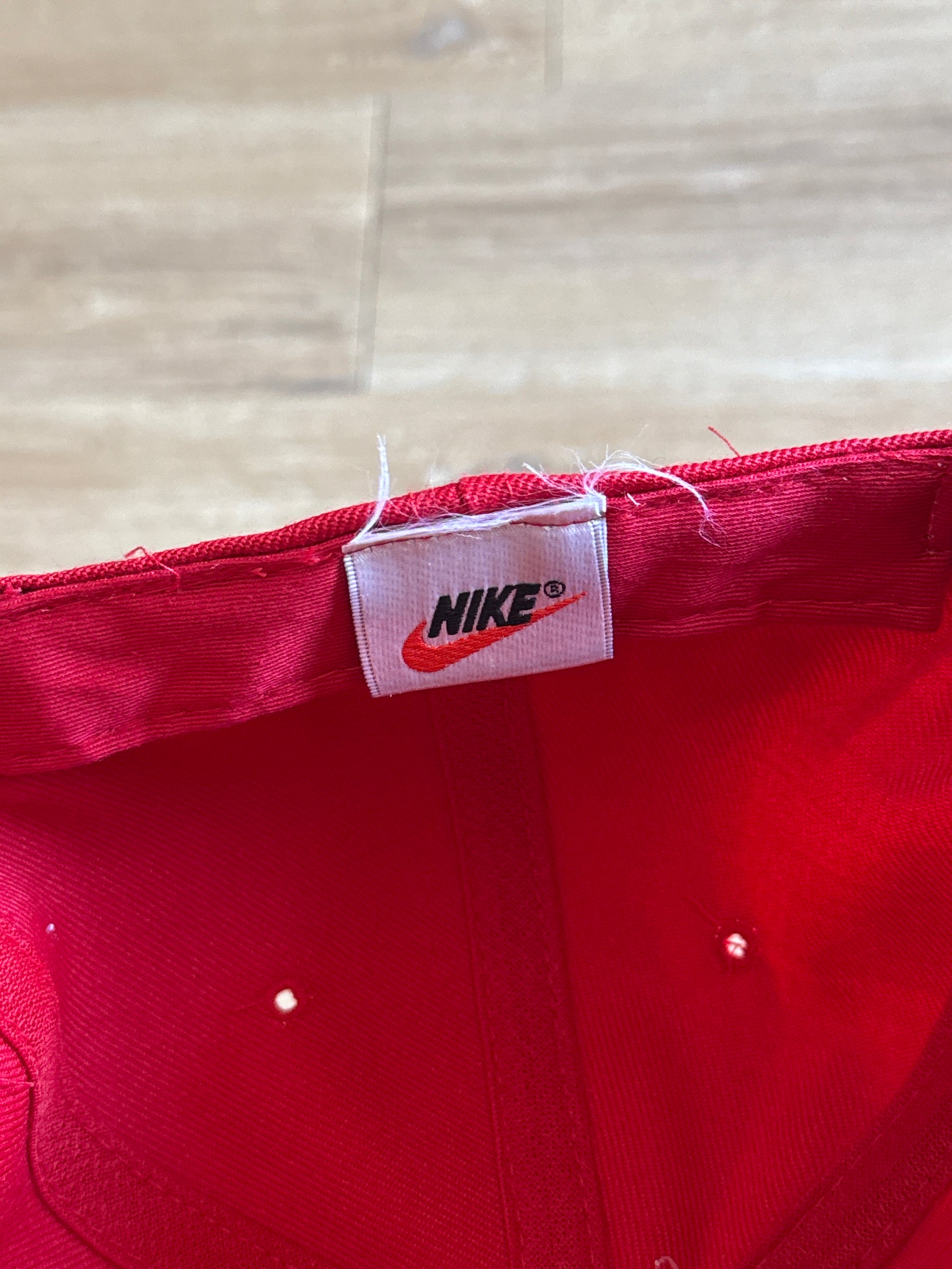 Vintage 90s Nike Logo Red Elastic Fitted Hat