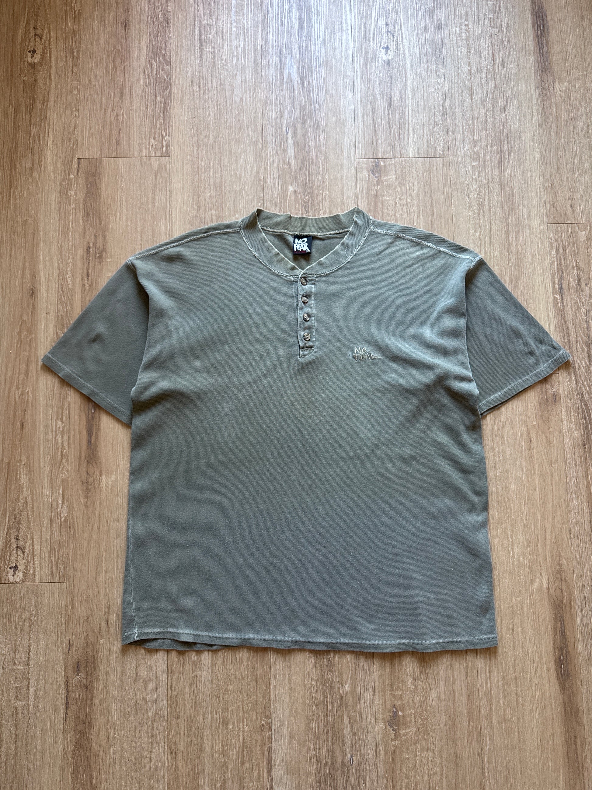 Vintage No Fear Green Embroidered Logo Quarter Button Up Tee