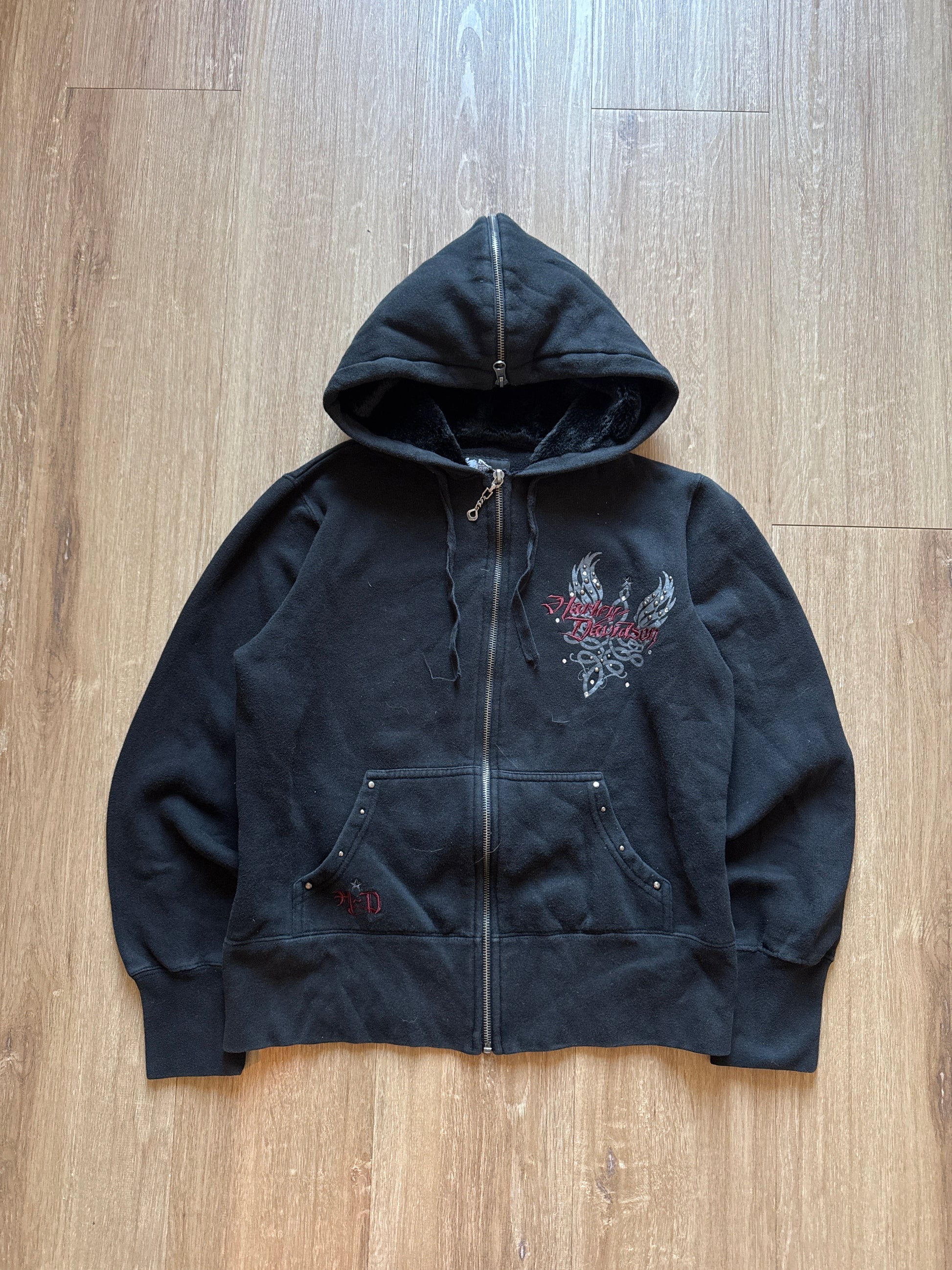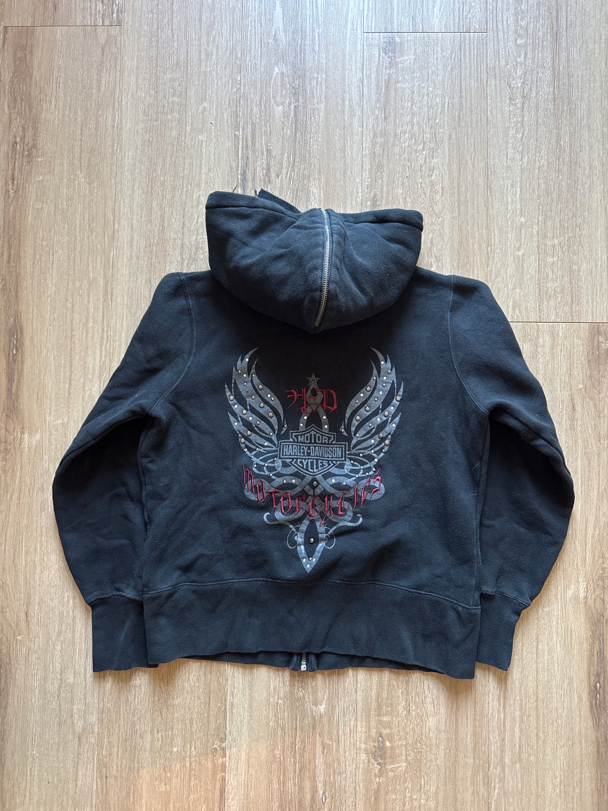 Vintage Y2K Women’s Harley Davidson Hooded Zip Up Jacket